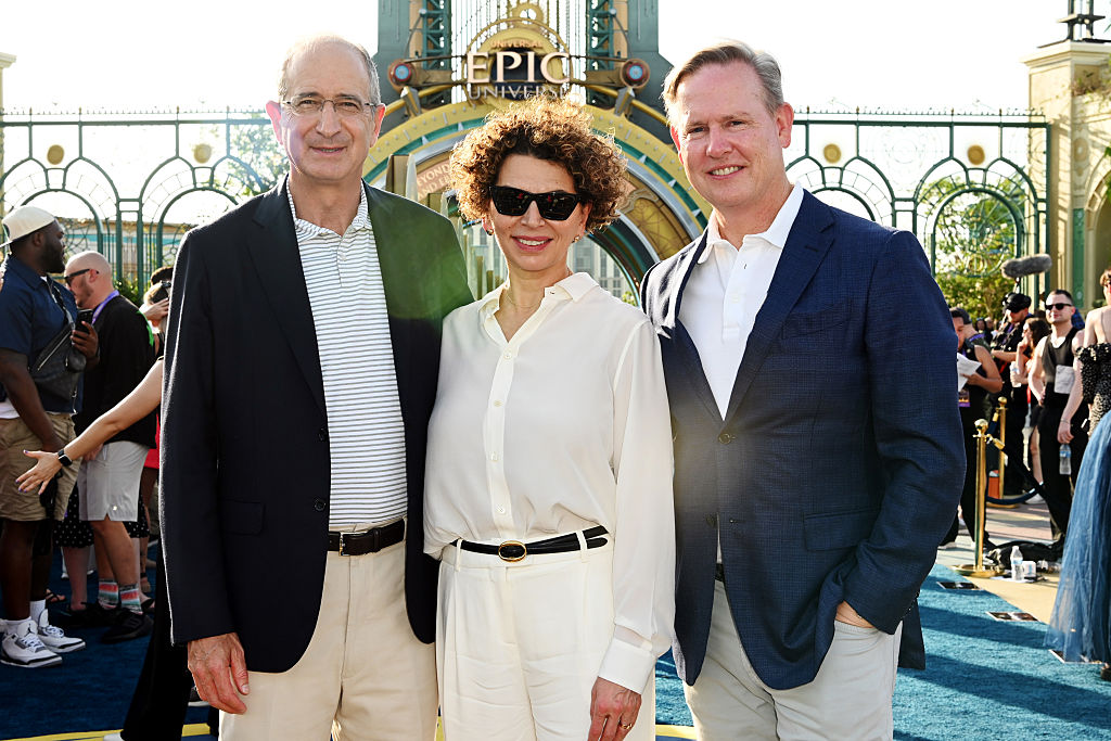 Brian Roberts (L) and Mike Cavanagh (R) attend the grand opening of the Universal Epic Universe on May 21, 2025, in Orlando, Fla. Getty Images for Universal Orlan