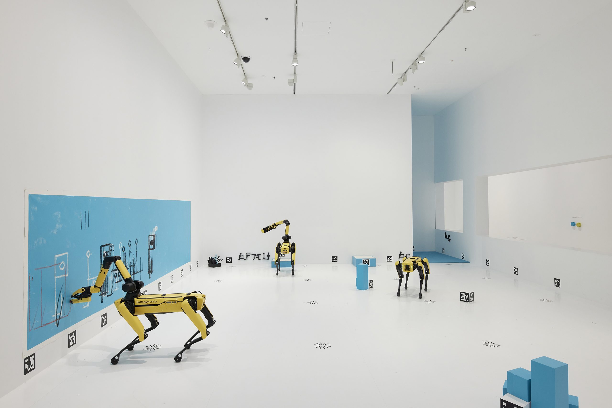 View of A.I. student, Flynn, in a classroom at the University of Applied Arts ViennaFlynn, the first A.I. art student, in a classroom at the University of Applied Arts Vienna. Courtesy Malpractice